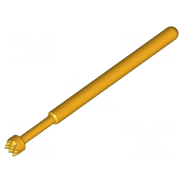 Igła testowa przeznaczona do zadań pomiarowych charakteryzuje się prądem znamionowym 5A oraz rezystancją styku wynoszącą maksymalnie 20mΩ. Zakończona jest ząbkowaną końcówką o średnicy 2,54mm, co umożliwia kontakt z badanym elementem. Element wykonany jest ze stali ze złoconą powłoką, a jego konstrukcja posiada właściwości magnetyczne.