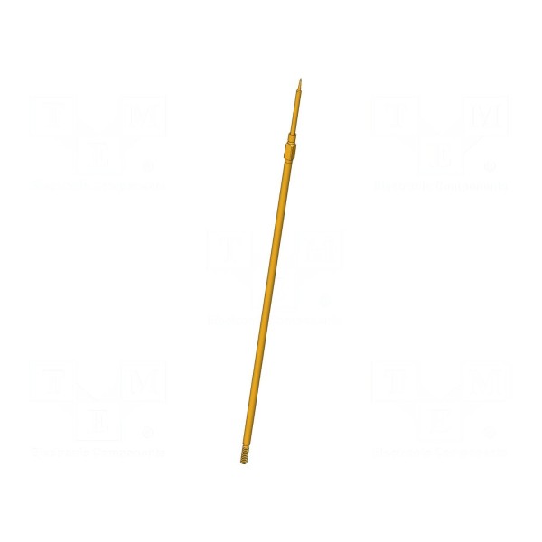 Igła testowa o długości 47,3mm przeznaczona jest do precyzyjnych pomiarów elektrycznych. Element charakteryzuje się prądem znamionowym 2A oraz maksymalną rezystancją styku wynoszącą 20mΩ. Ostrze o średnicy 0,5mm wykonane zostało ze stali, a powierzchnia styku została pokryta warstwą złota, co wpływa na parametry przewodzenia.