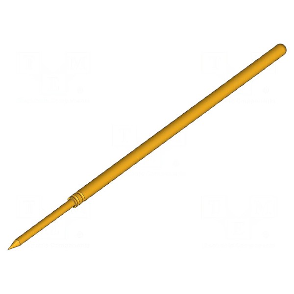 Igła testowa przeznaczona jest do pracy pod prądem znamionowym 3A. Element charakteryzuje się końcówką o średnicy 0,64mm w kształcie ostrego stożka, co ułatwia kontakt z punktami pomiarowymi. Konstrukcja wykonana ze stali z pokryciem złoconym zapewnia przewodność przy maksymalnej rezystancji styku wynoszącej 20mΩ.