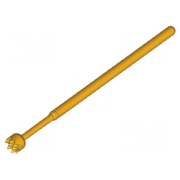 Konstrukcja wykonana jest z miedzi berylowej (CuBe) z powierzchnią złoconą, co wpływa na parametry przewodzenia. Igła posiada magnetyczne właściwości i jest przystosowana do montażu wciskanego. Całkowita długość elementu wynosi 33,4mm.