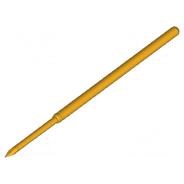 Igła testowa INGUN przeznaczona jest do precyzyjnych połączeń stykowych, charakteryzując się prądem znamionowym na poziomie 5A oraz maksymalną rezystancją styku wynoszącą 20mΩ. Element wykonany został ze stali i posiada powierzchnię pozłacaną, co wpływa na jego parametry użytkowe w układach pomiarowych. Końcówka o średnicy 0,9mm posiada kształt wydłużonego sztyletu.
