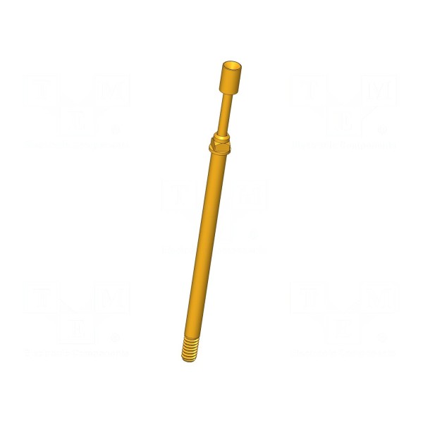 Igła testowa przeznaczona do układów pomiarowych charakteryzuje się prądem znamionowym 8A oraz rezystancją styku wynoszącą maksymalnie 20mΩ. Element wyposażono w końcówkę o średnicy 2mm w kształcie odwróconego stożka, która wykonana jest z miedzi berylowej (CuBe) z powierzchnią pozłacaną.