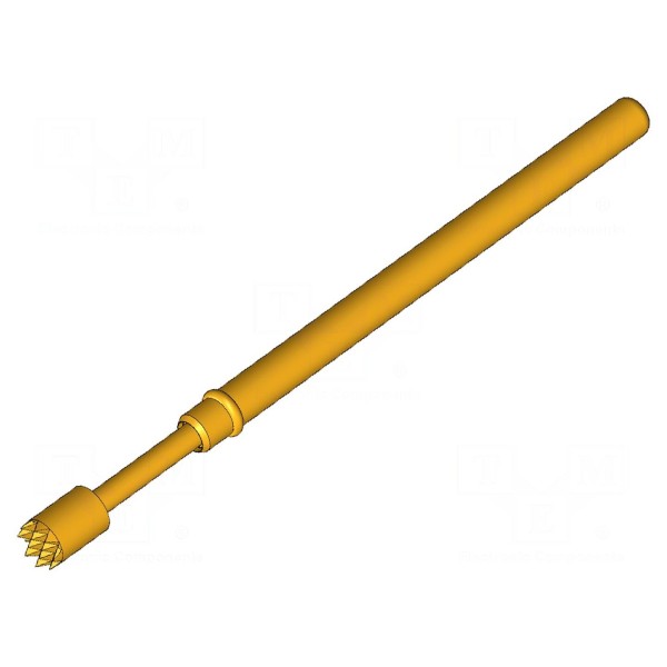 Igła testowa GKS-112 306 200 A 3002 została zaprojektowana do systemów pomiarowych, oferując prąd znamionowy na poziomie 8A. Element posiada końcówkę o średnicy 2mm w kształcie ząbkowanym, a jego rezystancja styku wynosi maksymalnie 20mΩ. Zastosowane materiały obejmują stop miedzi i berylu (CuBe) z powłoką złoconą, co wpływa na parametry przewodzenia.