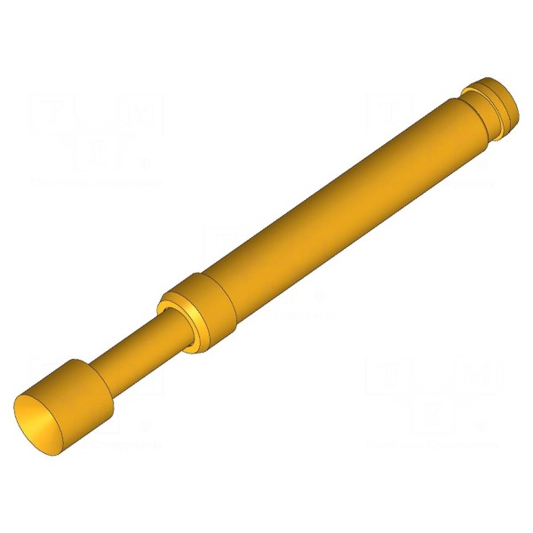 Igła testowa INGUN GKS-113 203 300 A 1502 to element stykowy o średnicy końcówki 3 mm, przeznaczony do montażu wciskanego. Końcówka o kształcie odwróconego stożka wykonana została ze stali i poddana procesowi złocenia, co zapewnia rezystancję styku na poziomie maksymalnie 30 mΩ. Element charakteryzuje się prądem znamionowym wynoszącym 5 A.