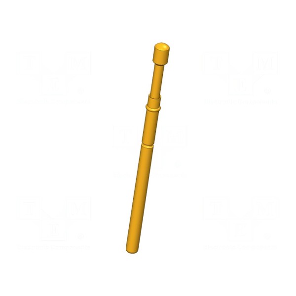 Igła testowa przeznaczona jest do systemów sprawdzania połączeń elektrycznych, oferując prąd znamionowy na poziomie 8A. Element wykonany został z miedzi berylowej (CuBe) z powierzchnią wykończoną złoceniem, co zapewnia odpowiednie właściwości stykowe podczas pracy.