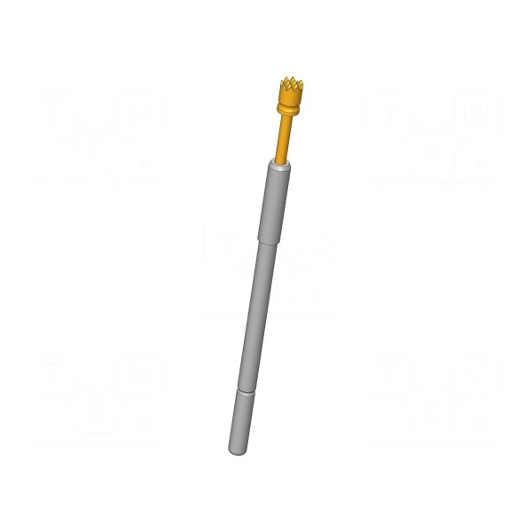 Igła testowa INGUN przeznaczona jest do pracy w układach o prądzie znamionowym do 20A. Element wyposażono w ząbkowaną końcówkę o średnicy 2mm, a styk wykonano z miedzi berylowej (CuBe) z pozłacaną powierzchnią. Maksymalna rezystancja styku wynosi 10mΩ, co zapewnia stabilne parametry połączenia w szerokim zakresie temperatur roboczych od -100 do 200°C.
