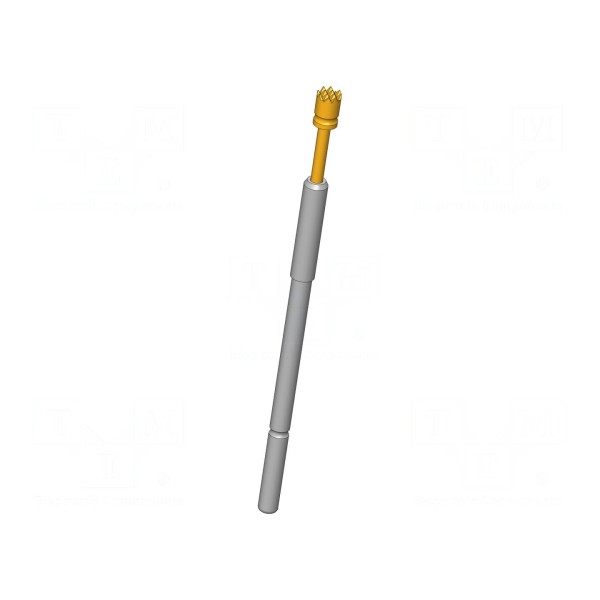 Igła testowa INGUN HSS-118 306 200 A 2209 przeznaczona jest do precyzyjnych połączeń pomiarowych przy prądzie znamionowym do 20A. Element wyposażono w ząbkowaną końcówkę o średnicy 2mm, co zapewnia stabilny styk podczas pracy. Konstrukcja wykonana została z miedzi berylowej (CuBe) z powierzchnią pozłacaną, co przekłada się na maksymalną rezystancję styku na poziomie 10mΩ.