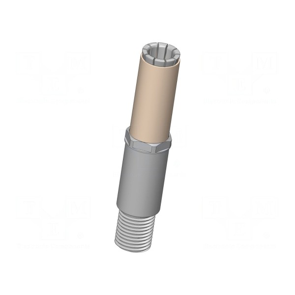 Konstrukcja elementu o długości 72,7 mm posiada płaską końcówkę o średnicy 13 mm. Komponent przystosowany jest do montażu wkręcanego i może pracować w szerokim zakresie temperatur roboczych od -100°C do 200°C.