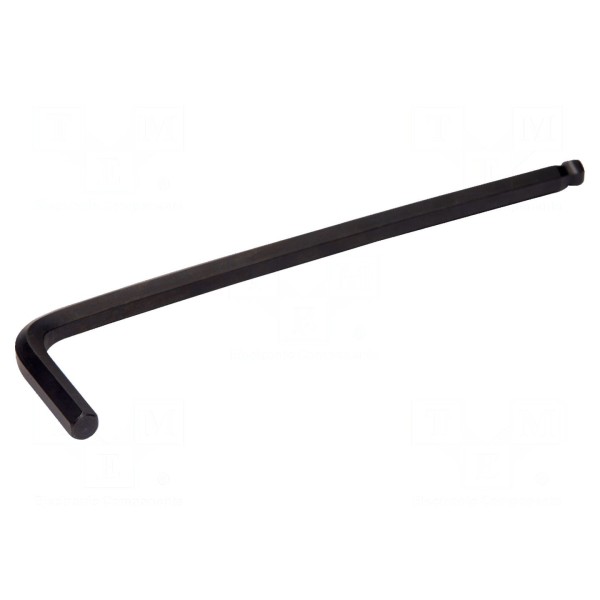 Klucz imbusowy o przekroju HEX 2mm posiada końcówkę kulistą, która ułatwia pracę pod kątem w trudno dostępnych miejscach. Całkowita długość narzędzia wynosi 102 mm.