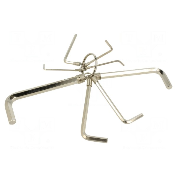 W skład zestawu wchodzą klucze o rozmiarach HEX 2mm, HEX 2,5mm, HEX 3mm, HEX 4mm, HEX 5mm, HEX 6mm, HEX 8mm oraz HEX 10mm. Zestaw dostarczany jest w opakowaniu zbiorczym zawierającym 8 sztuk narzędzi.