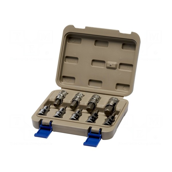 Narzędzia przeznaczone są do współpracy z pokrętłami i grzechotkami o kwadracie 1/2". Zestaw pozwala na obsługę szerokiego zakresu śrub z gniazdem sześciokątnym w pracach warsztatowych oraz montażowych.