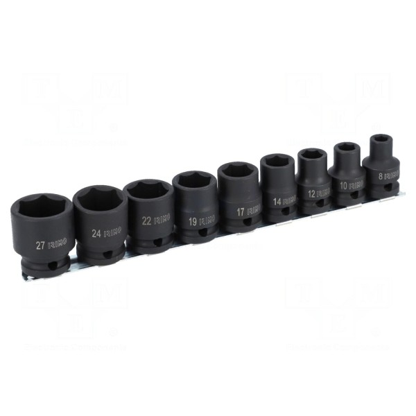 Klucz nasadowy 6-kątny udarowy 1/2", zestaw 9-elementowy