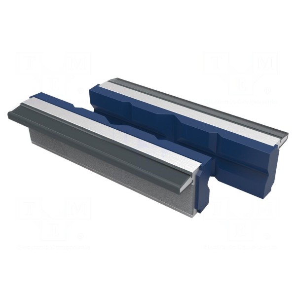 Zestaw szczęk ochronnych o szerokości 100 mm przeznaczony jest do stosowania w imadłach warsztatowych. Produkt wykonany został z poliuretanu, co pozwala na bezpieczne mocowanie elementów bez ryzyka ich uszkodzenia lub zarysowania powierzchni.