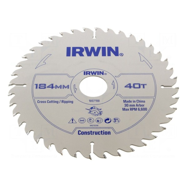 Piła tarczowa o średnicy 184 mm wyposażona jest w 40 zębów, co umożliwia cięcie elementów z drewna. Narzędzie zostało zaprojektowane do współpracy z elektronarzędziami poprzez otwór montażowy o średnicy 30 mm.