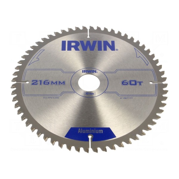 Piła tarczowa IRWIN jest przeznaczona do obróbki aluminium. Tarcza posiada średnicę 216 mm oraz 60 zębów, co zapewnia parametry pracy wymagane przy cięciu materiałów z metali nieżelaznych.