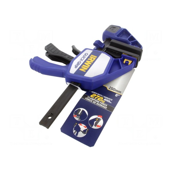 Ścisk stolarski typu Quick-Grip przeznaczony jest do unieruchamiania elementów obrabianych w pracach warsztatowych i montażowych. Narzędzie obsługuje zakres chwytania o maksymalnej długości 150mm.