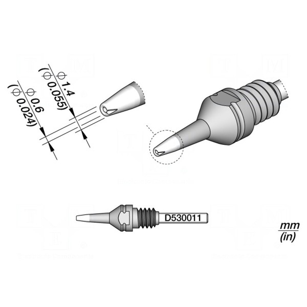 Grot przeznaczony jest do wykorzystania z rozlutownicami. Element charakteryzuje się wymiarami końcówki wynoszącymi 1,4x0,6mm.