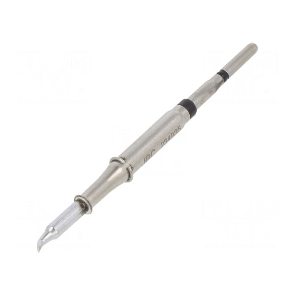 Grot o kształcie zagiętego stożka zintegrowany jest z grzałką, co zapewnia efektywną transmisję ciepła. Wymiar końcówki wynosi 0,1 mm, co pozwala na precyzyjne prace lutownicze.