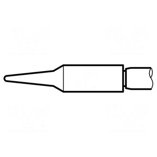 Grot lutowniczy o kształcie stożka i średnicy końcówki 0,5 mm to element wyposażony w zintegrowaną grzałkę. Konstrukcja ta zapewnia szybki transfer ciepła bezpośrednio do punktu lutowniczego.