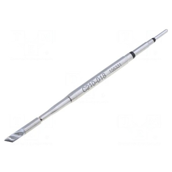 Grot lutowniczy typu nóż z wbudowaną grzałką przeznaczony jest do wykorzystania w minilutownicach oraz stacjach lutowniczych. Element charakteryzuje się wymiarami końcówki roboczej wynoszącymi 3,4x0,3 mm.