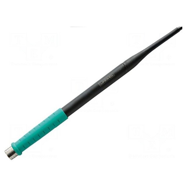 Lutownica grzałkowa JBC TOOLS T245-GA to element przeznaczony do pracy ze stacjami lutowniczymi. Urządzenie charakteryzuje się mocą 150W oraz napięciem zasilania wynoszącym 24V. Konstrukcja typu ESD zapewnia wymagany poziom ochrony przy pracach z komponentami wrażliwymi na wyładowania elektrostatyczne.