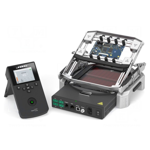 Sterowanie procesem grzania odbywa się za pomocą mikroprocesora, a użytkownik ma możliwość cyfrowej regulacji temperatury w zakresie od 50 do 250°C z dokładnością pomiaru wynoszącą ±5°C. System oferuje trzy poziomy regulacji wysokości, dwie niezależne strefy grzewcze oraz możliwość zapamiętania 22 profili temperaturowych. Urządzenie zostało wyposażone w złącze do podłączenia pedału oraz szereg portów komunikacyjnych: RJ12, RJ45, USB A oraz USB B. Pracę urządzenia sygnalizuje wskaźnik LED.