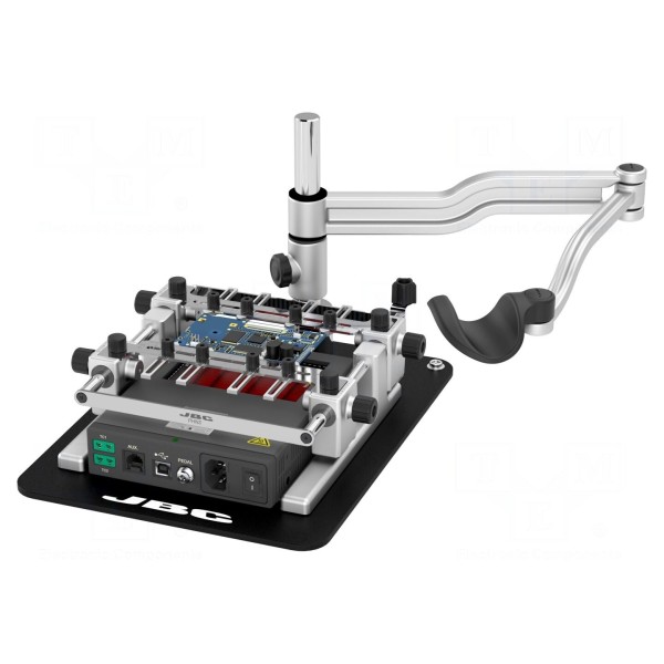 Podgrzewacz JBC TOOLS RBN-2A to urządzenie o mocy 300W przeznaczone do przygotowania płytek drukowanych przed procesami montażu i demontażu komponentów, w tym do regeneracji układów BGA. Powierzchnia robocza o wymiarach 108x70mm pozwala na efektywne działanie w warunkach ESD. Sterowanie odbywa się za pomocą mikroprocesora, a cyfrowa regulacja temperatury w zakresie od 50 do 250°C zapewnia dokładność pomiaru na poziomie ±5°C.