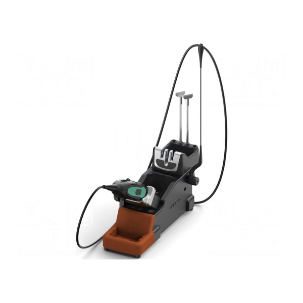 Podstawka lutownicza przeznaczona jest do współpracy z gorącymi szczypcami JBC-AT420-A. Wyposażenie to umożliwia wymianę grota na gorąco oraz automatyczne załączanie trybu uśpienia i hibernacji urządzenia w momencie odłożenia narzędzia.