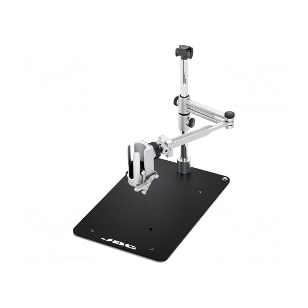 Urządzenie posiada właściwości antystatyczne ESD, co zapewnia bezpieczeństwo podczas pracy z komponentami wrażliwymi na wyładowania elektrostatyczne. Wymiary ramienia wynoszą 444,5 mm długości oraz 386,5 mm wysokości. Produkt jest kompatybilny ze stacją JBC-PHSE-2KB.