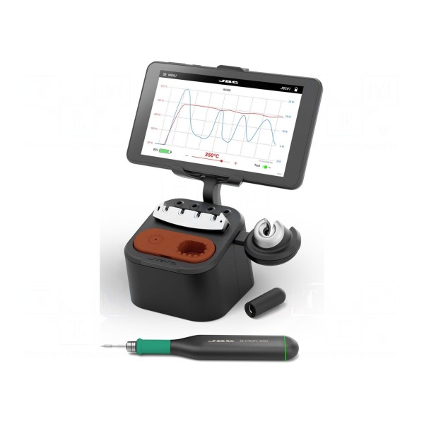Stacja zasilana jest napięciem 230V AC, natomiast lutownica korzysta z akumulatora Li-Ion 7,4V o pojemności 180mAh. W zestawie: czyścik do grotów, grot JBC-C210001, kabel USB/USB Micro, kabel zasilający, konsola operatorska, lutownica bezprzewodowa oraz podstawka z nasadką ochronną.