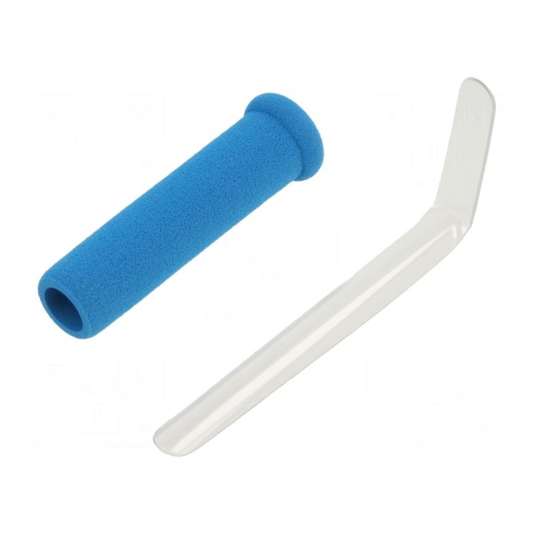 Uchwyt przeznaczony do lutownic jest wykonany w wersji ESD, co pozwala na bezpieczną pracę z komponentami wrażliwymi na wyładowania elektrostatyczne. Element charakteryzuje się niebieskim kolorem oraz wymiarami zewnętrznymi wynoszącymi 15,8 mm średnicy i 62 mm długości.