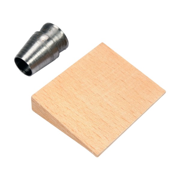 Zestaw zawiera drewniany klin 42x28 mm oraz metalową tulejkę fi 14 mm.