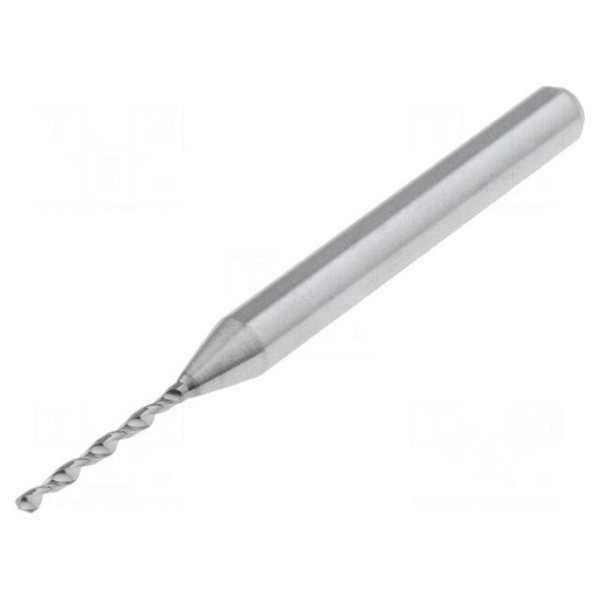 Wiertło przeznaczone jest do obróbki płytek drukowanych. Narzędzie zostało wykonane z węglika wolframu, co zapewnia odpowiednie właściwości skrawające przy pracy z materiałami stosowanymi w elektronice.