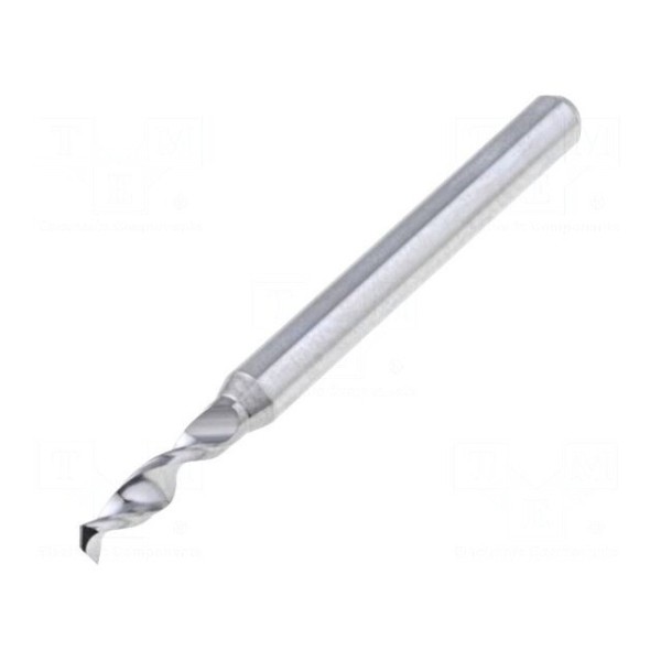 Wiertło przeznaczone jest do obróbki płytek drukowanych. Narzędzie wykonano z węglika wolframu, co zapewnia odpowiednią twardość podczas pracy z materiałami stosowanymi w elektronice.