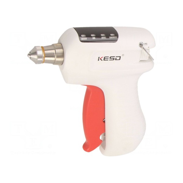Jonizator powietrza KESD KG-5 to urządzenie typu pistoletowego przeznaczone do eliminacji ładunków elektrostatycznych. Sprzęt pracuje w trybie wysokiej częstotliwości AC, osiągając czas usuwania ładunków na poziomie 0,6 s w odległości 150 mm oraz równowagę jonową wynoszącą ±10 V. Urządzenie wymaga podłączenia do zewnętrznego źródła sprężonego powietrza, przy czym ciśnienie pracy mieści się w zakresie od 0,5 do 5 bar.