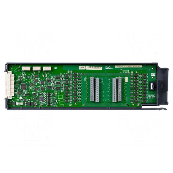 Komponent jest dedykowany do współpracy z systemami akwizycji danych typu DAQ970A oraz DAQ973A. Urządzenie wymaga montażu w kompatybilnej jednostce bazowej, zgodnie z przeznaczeniem do systemowych zastosowań pomiarowych.