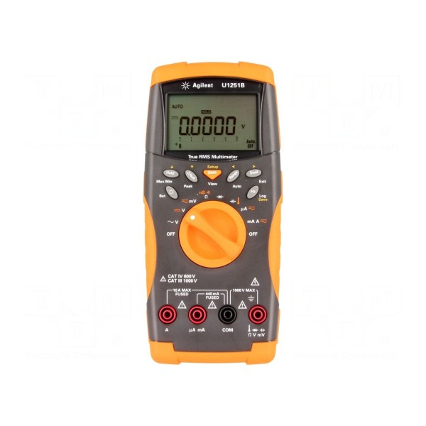 Multimetr cyfrowy KEYSIGHT U1251B umożliwia pomiar napięcia AC/DC do 1kV, prądu AC/DC do 10A oraz rezystancji, pojemności, częstotliwości i temperatury. Urządzenie wykorzystuje funkcję pomiaru rzeczywistej wartości skutecznej (True RMS). Pomiary napięcia AC realizowane są w paśmie 30Hz–30kHz, natomiast prądu AC w paśmie 20Hz–20kHz. Wyświetlacz LCD o rozdzielczości 5 cyfr (50000 zliczeń) wyposażony jest w 21-segmentowy bargraf ułatwiający obserwację zmian sygnału.