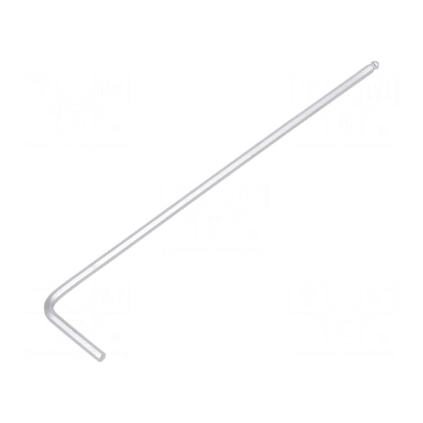 Klucz imbusowy typu HEX o rozmiarze 1,5 mm wykonany ze stali stopowej. Konstrukcja typu długa została zakończona końcówką kulistą, co pozwala na pracę pod kątem w miejscach o ograniczonej przestrzeni.