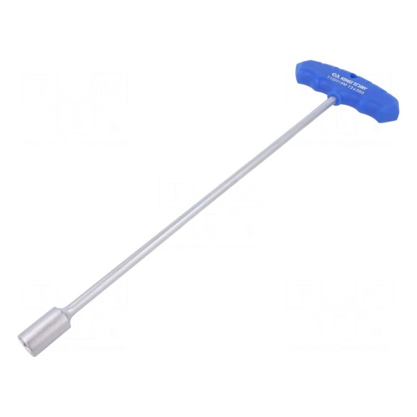 Klucz nasadowy KING TONY to narzędzie ręczne typu T wyposażone w sześciokątne gniazdo o rozmiarze 13 mm. Konstrukcja narzędzia obejmuje część roboczą o długości 350 mm, co przekłada się na całkowitą długość wynoszącą 394 mm.