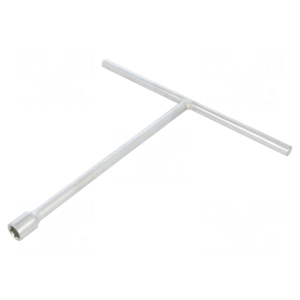 Klucz nasadowy o rozmiarze 12 mm został wykonany ze stali chromowo-wanadowej. Narzędzie posiada rękojeść typu T, która ułatwia pracę przy odkręcaniu i dokręcaniu elementów złącznych.