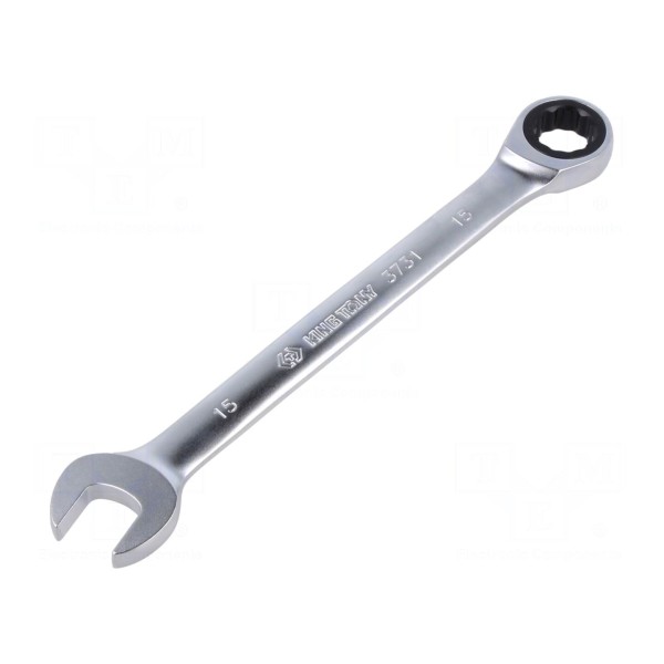 Klucz płasko-oczkowy 15mm z grzechotką i przegubem, długość 199mm
