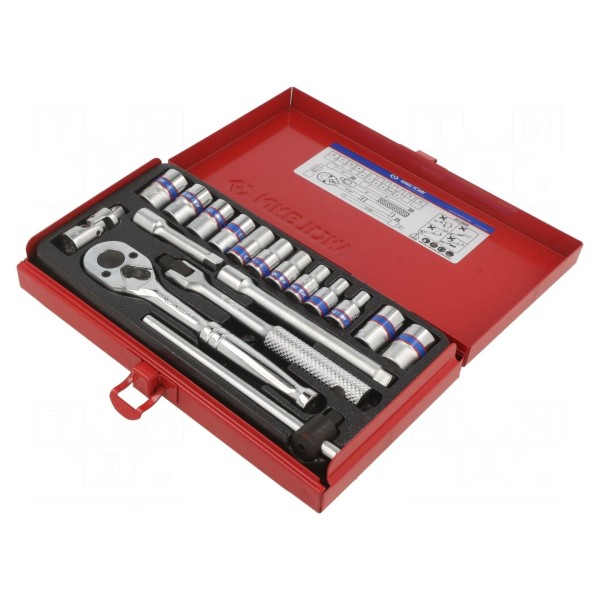 Zestaw kluczy nasadowych KING TONY 2519MR składa się z 18 elementów wyposażonych w gniazdo uchwytu o rozmiarze 1/4". Narzędzia charakteryzują się konstrukcją 6-kątną oraz 8-kątną, co pozwala na różnorodne zastosowanie podczas prac warsztatowych.