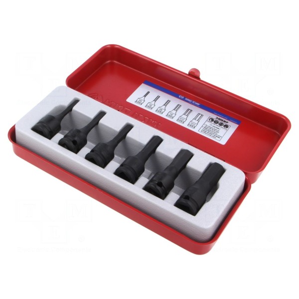 Zestaw zawiera klucze nasadowe typu udarowego o rozmiarze gniazda uchwytu 3/8". Komplet obejmuje 6 sztuk narzędzi przeznaczonych do pracy z urządzeniami udarowymi.
