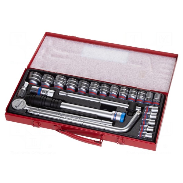 Komplet narzędzi znajduje zastosowanie w pracach mechanicznych wymagających obsługi śrub z łbami o wymiarach calowych. Całość została skonfigurowana w sposób umożliwiający wygodne operowanie kluczami nasadowymi w standardzie 1/2".