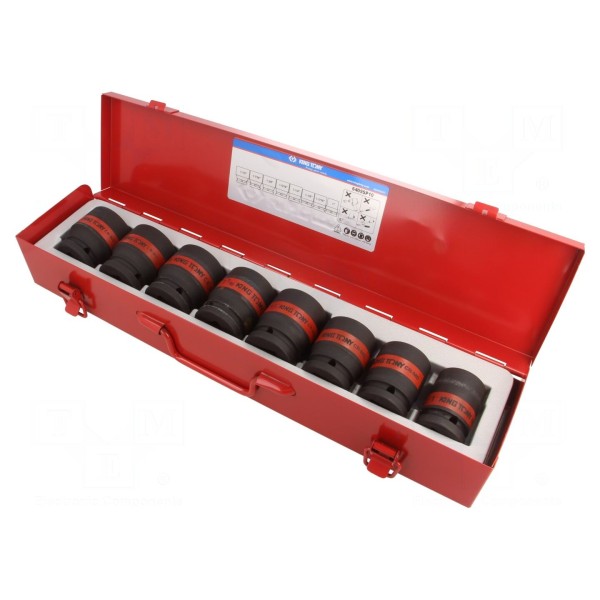 Zestaw kluczy nasadowych udarowych marki King Tony przeznaczony jest do prac z osprzętem o gnieździe 3/4". Komplet składa się z 8 elementów, zapewniając odpowiedni dobór narzędzi do obsługi połączeń śrubowych.