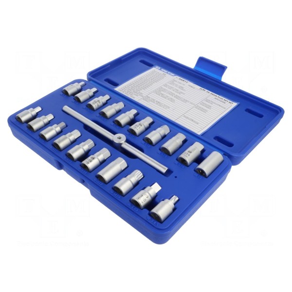 Elementy zestawu zostały wykonane z uwzględnieniem specyfiki pracy z połączeniami gwintowanymi o profilu nasadowym. Narzędzie jest kompatybilne z akcesoriami posiadającymi gniazdo montażowe w standardzie 3/8".