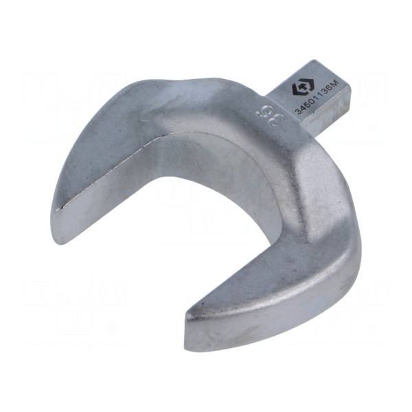 Końcówka klucza płaskiego przeznaczona jest do współpracy z kluczami dynamometrycznymi. Element posiada rozmiar roboczy 36 mm oraz gniazdo uchwytu o wymiarach 9x12 mm.