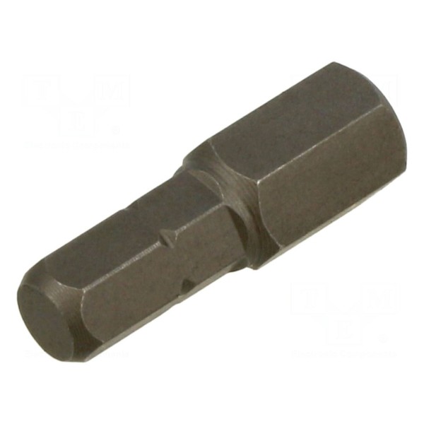 Końcówka wkrętakowa typu imbus przeznaczona jest do współpracy z narzędziami wyposażonymi w uchwyt o rozmiarze 1/4" oraz standardzie C6,3mm. Element posiada grot o rozmiarze HEX 8mm. Całkowita długość narzędzia wynosi 25mm, co pozwala na pracę w miejscach o ograniczonej przestrzeni roboczej. Produkt został wykonany zgodnie ze specyfikacją techniczną dla końcówek wkrętakowych typu imbus.