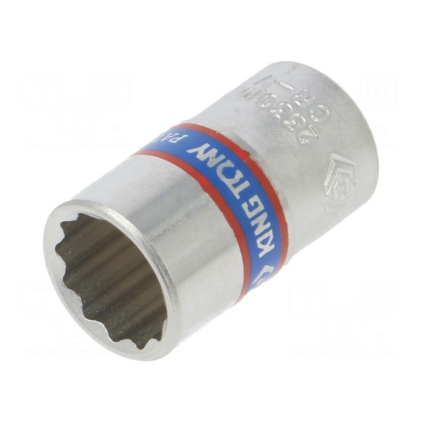 Nasadka King Tony 233010M to element wyposażenia warsztatowego o konstrukcji 12-kątnej i rozmiarze gniazda 10mm. Narzędzie zostało wykonane w wersji krótkiej o całkowitej długości 24mm. Produkt posiada mocowanie o rozmiarze 1/4" przeznaczone do współpracy z odpowiednimi pokrętłami i grzechotkami. Parametry techniczne nasadki umożliwiają obsługę elementów złącznych w miejscach o ograniczonej przestrzeni roboczej.