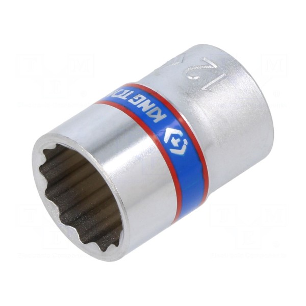 Nasadka KING TONY o konstrukcji 12-kątnej przeznaczona jest do współpracy z kluczami wyposażonymi w trzpień napędowy o rozmiarze 1/4". Element charakteryzuje się rozmiarem gniazda wynoszącym 12 mm. Produkt posiada krótką wersję konstrukcyjną o całkowitej długości 24 mm. Dzięki swojemu kształtowi nasadka umożliwia efektywną pracę z elementami złącznymi w miejscach o ograniczonej przestrzeni montażowej.